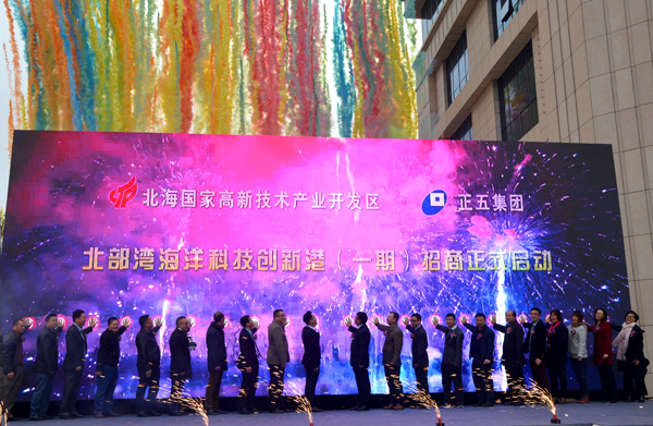 1月8日,備受各方關(guān)注的北部灣海洋科技創(chuàng)新港項(xiàng)目(一期)招商啟動(dòng)儀式隆重舉行。北海市各政府部門相關(guān)領(lǐng)導(dǎo)以及全市政商知名人士、企業(yè)代表等近500名嘉賓出席了活動(dòng)。創(chuàng)新港項(xiàng)目的順利推進(jìn),是廣西正五實(shí)業(yè)集團(tuán)有限公司上下因時(shí)而動(dòng)、順勢(shì)而為,在“一帶一路”框架下推動(dòng)大開放大開發(fā),奏響“向海經(jīng)濟(jì)”藍(lán)色交響樂(lè)的新序曲。