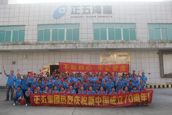 下午,正五集團(tuán)組織員工在正五海產(chǎn)大廣場舉行慶祝新中國成立